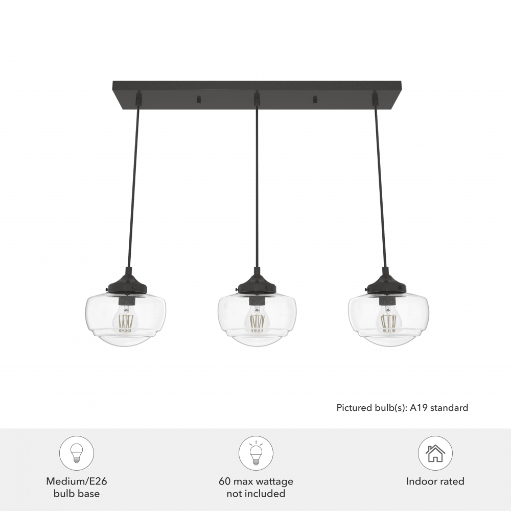 Offering an elevated take on schoolhouse style, the Saddle Creek linear cluster is designed to introduce some wow factor into your living room, great room, or study. The vintage style of the illuminating globes are balanced by the fixture’s subtle metal finish and fittings. A decorative ceiling canopy is a crowning touch on this stylish new traditional centerpiece. Mix and match with other fixtures from this collection or from our ceiling fan designs.