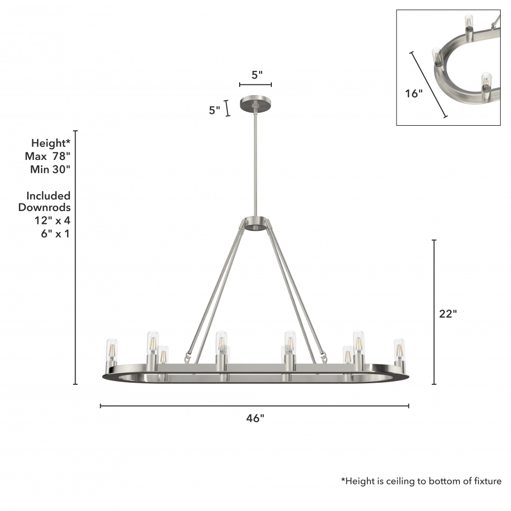 CUSTOMIZABLE HANGING OPTIONS: With the minimum required downrod, the hanging length is 30 inches. When using all of the included downrod, the maximum hanging length is 78 inches.
