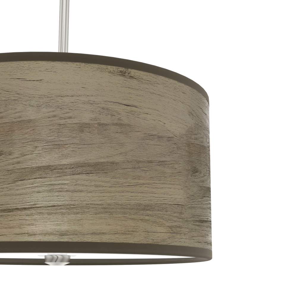 The Solhaven 2 light pendant is a picture of an updated mid-century style. The drum pendant light with wood-inspired shade is perfect in your office or your dining room. In any space, the Solhaven fixture sets a tone of sophistication that takes your mid-century into the next century. Our Solhaven collection has many sizes to mix and match anywhere you need extra lighting and style!