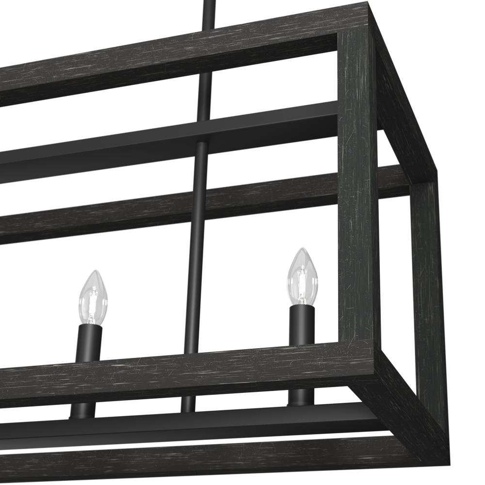The openness of the Squire Manor linear chandelier coupled with the clean lines and wood-inspired texture gives it an airy and warm aesthetic. With a simple form and subtle wood grain detailing, this lantern-inspired light feels at home in any setting, from farmhouse to Mid-Century modern.