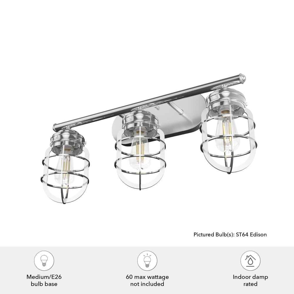 Turn-of-the-century inspiration with modern influences. The Starklake 3-light vanity light with caged shades stands out in modern industrial and farmhouse style bathrooms. Balancing industrial detailing with timeless design, the warehouse-inspired caged light elevates your space.