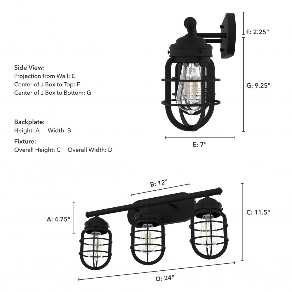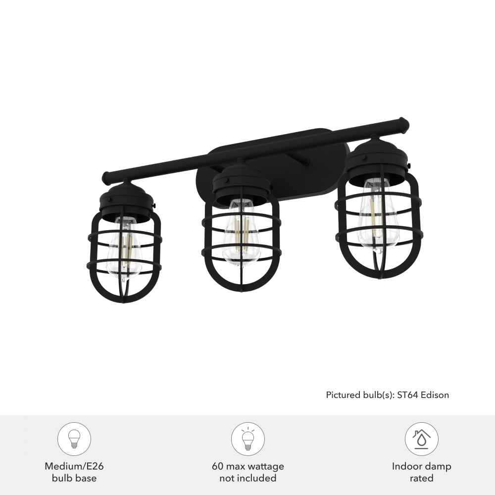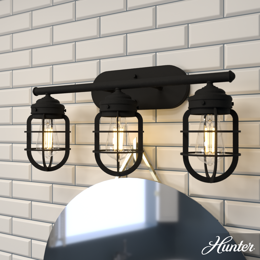 Turn-of-the-century inspiration with modern influences. The Starklake vanity light with caged shades stands out in modern industrial and farmhouse style bathrooms. Balancing industrial detailing with timeless design, the warehouse-inspired caged light elevates your space. This lighting will reflect your happiness and light up your life. Mix and match with other fixtures from this collection or from our ceiling fan designs.