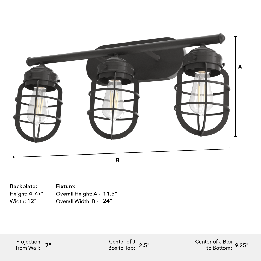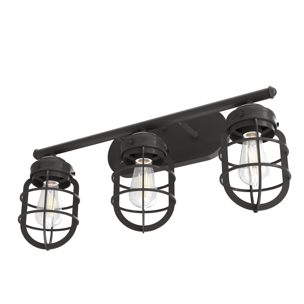 Turn-of-the-century inspiration with modern influences. The Starklake vanity light with caged shades stands out in modern industrial and farmhouse style bathrooms. Balancing industrial detailing with timeless design, the warehouse-inspired caged light elevates your space. This lighting will reflect your happiness and light up your life. Mix and match with other fixtures from this collection or from our ceiling fan designs.
