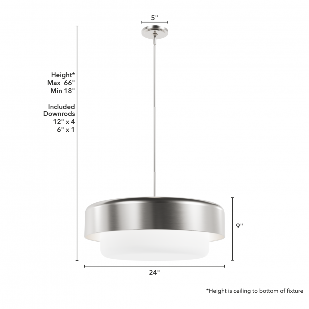 CUSTOMIZABLE HANGING OPTIONS: With the minimum required downrod, the hanging length is 18 inches. When using all of the included downrod, the maximum hanging length is 66 inches.
