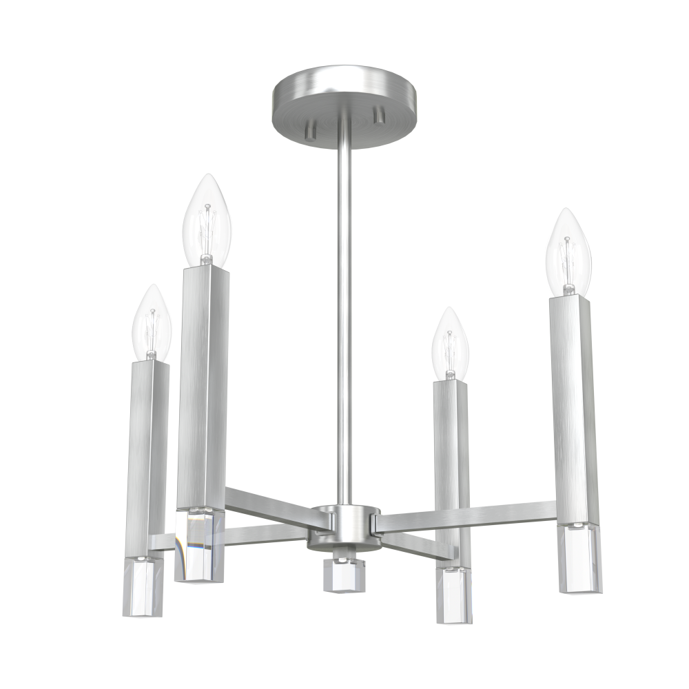 Elevate your space and style with the Sunjai. The versatile Sunjai fixture combines the classic beauty of a petite candelabra with modern glam. You can also convert it to a semi-flush mount to suit your space. This fixture is an elegant addition to your kitchen, dining room, or breakfast nook. Dine in the light of the Sunjai Pendant.