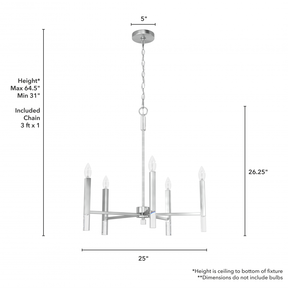CUSTOMIZABLE HANGING OPTIONS: With the minimum required chain, the hanging length is 31 inches. When using all of the included chain, the maximum hanging length is 64.5 inches.