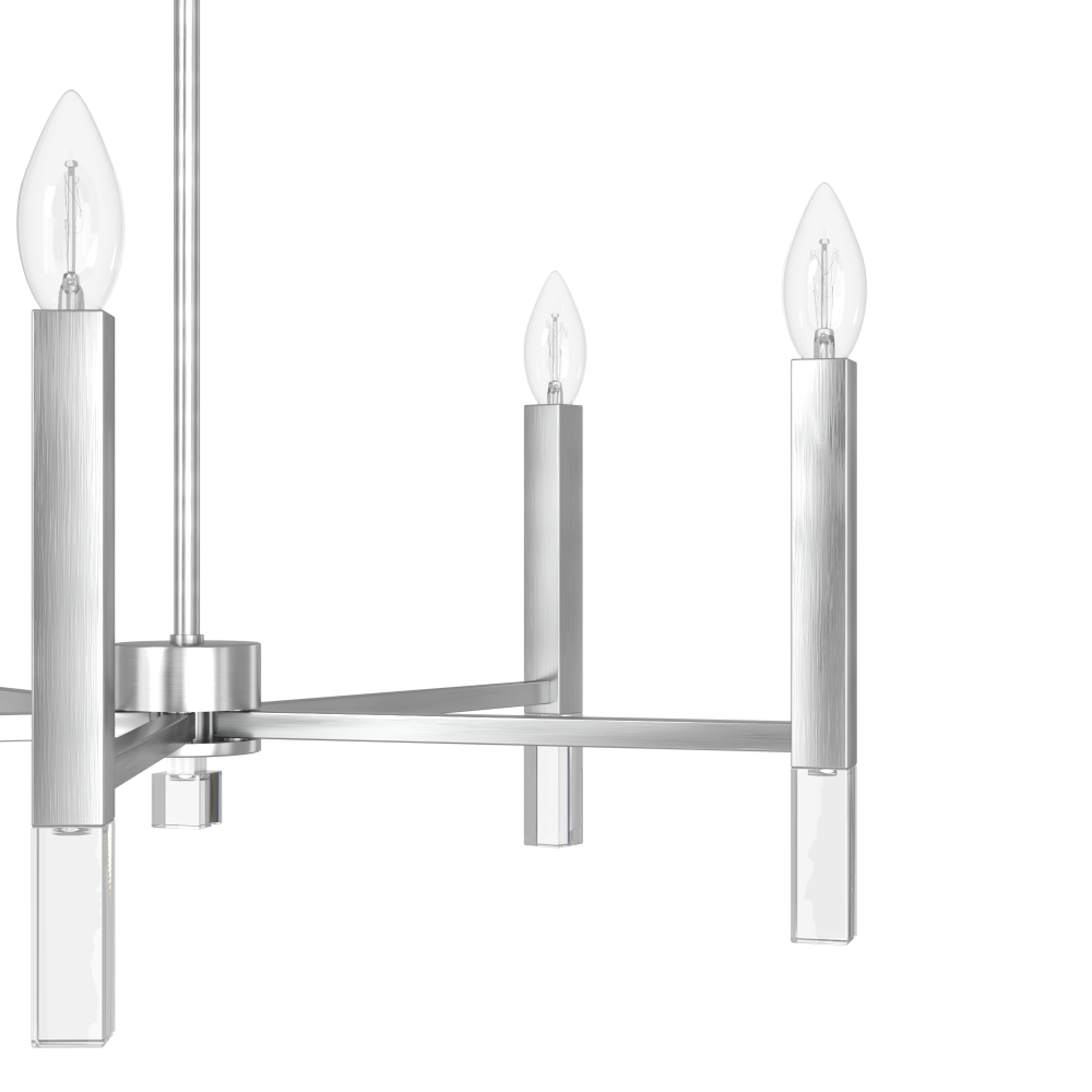 A bright and beautiful beginning awaits the moment anyone enters your home under the light of the Sunjai chandelier. The perfect accessory for your foyer, hallway, or dining room, this chandelier’s bright, clean lines beautifully complement the fixture’s soft, warming glow. The design’s overarching simplicity means the Sunjai can seamlessly transition into your home’s existing aesthetic. Add an air of tranquility with the Sunjai.