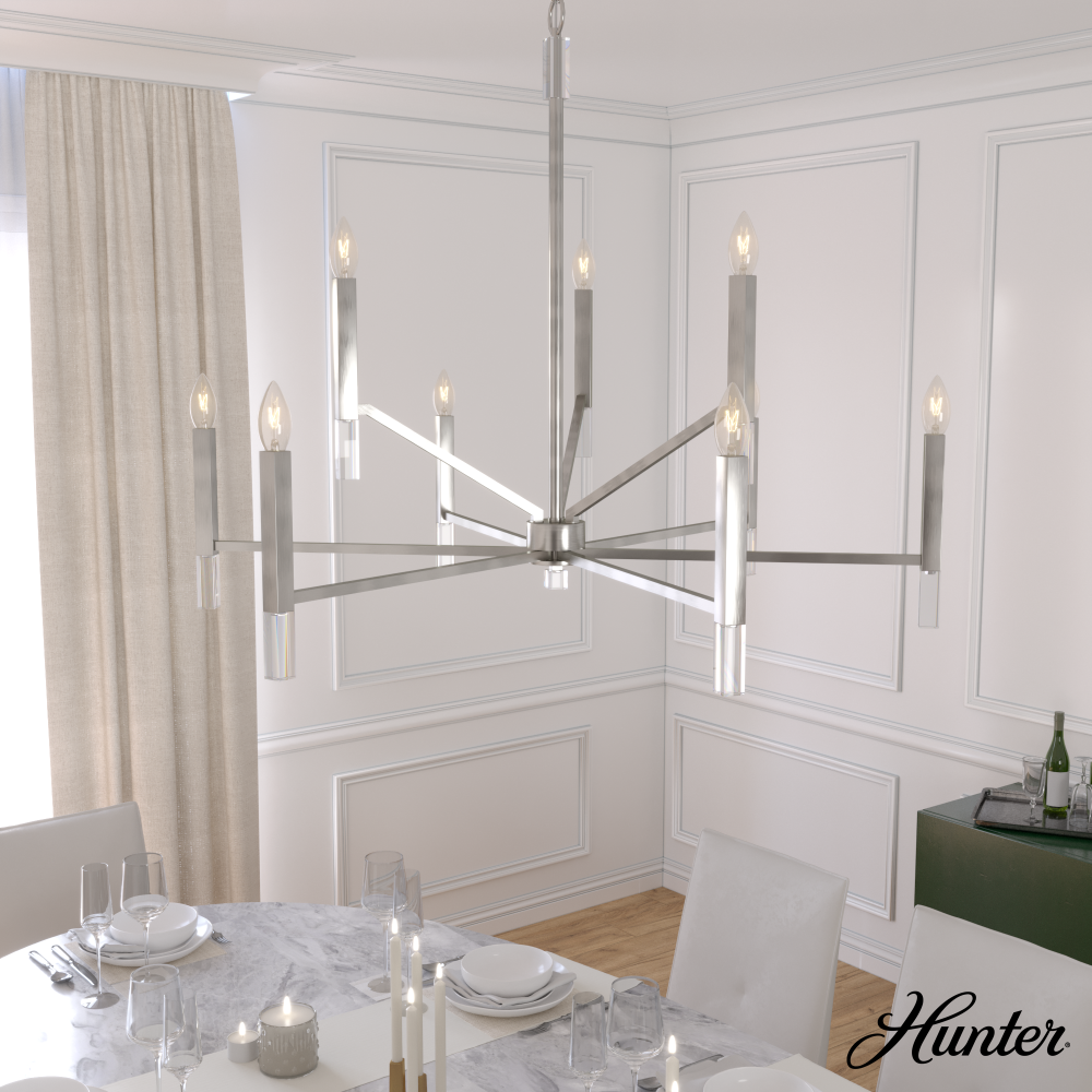 Uplift your home’s lighting aesthetic with the Sunjai tiered chandelier, featuring nine individual lights that evoke the classic glow of a candelabra, with a modern edge. The Sunjai’s casual geometry is offset by elegant shimmering adornments at the base of each light and the fixture’s overarching clean, modern design, adding a touch of glam. Brighten up gatherings with the Sunjai tiered chandelier.