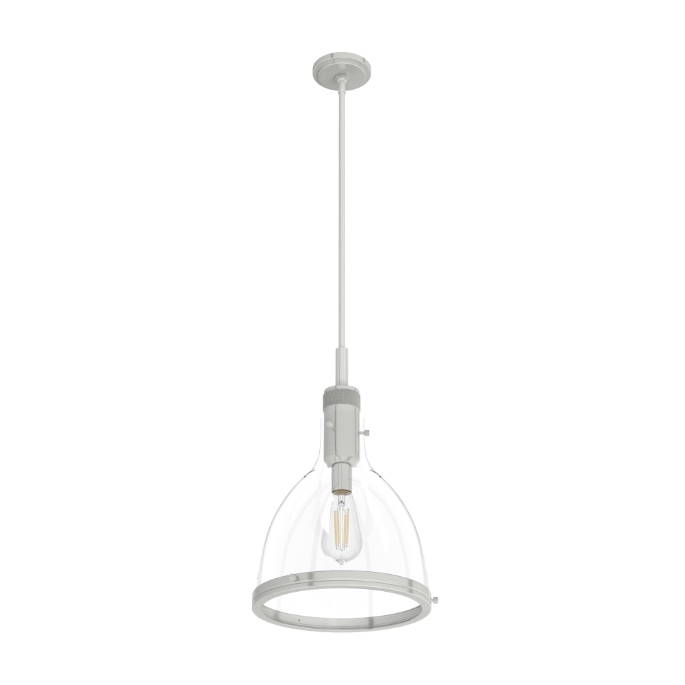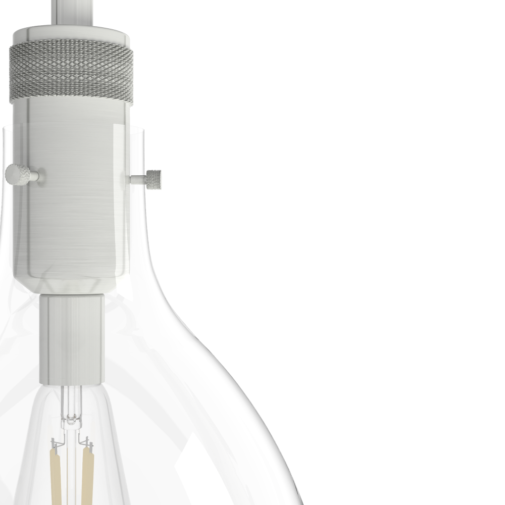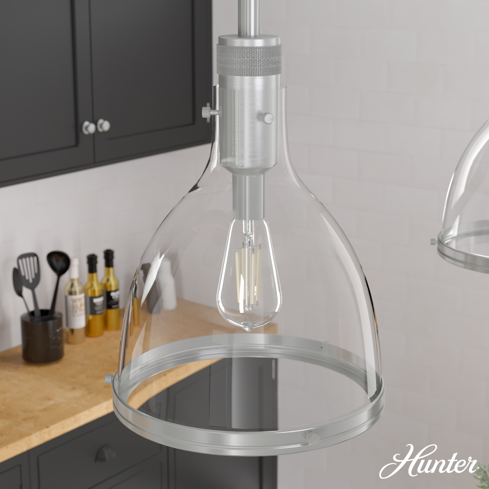 Industrial meets luxe with the Van Nuys modern pendant light. The metallic finishes add a glamorous look to the modern industrial knurling and thumb screw detailing. A pendant light with a clear glass shade like the Van Nuys calls for the warm glow of a vintage-style, filament light bulb. Pair this modern pendant light with other fixtures from the Van Nuys collection for a cohesive look in your space.