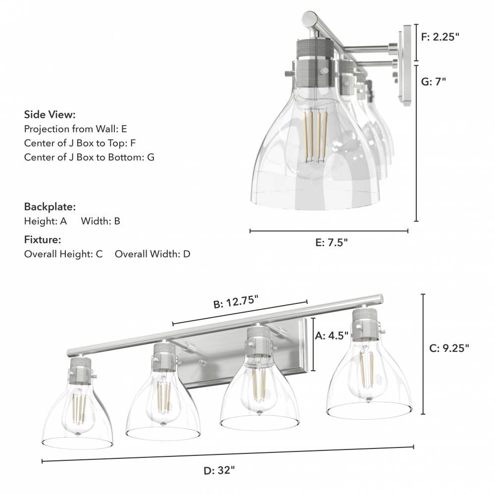 BULB RECOMMENDATION: Maximum W per light bulb or equivalent LED bulb. Bulbs not included.