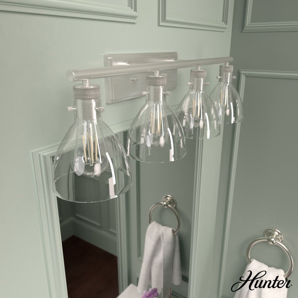 It’s all in the details. The Van Nuys vanity fixture is packed with vintage-inspired details and industrial touches. This fixture’s clean lines and unique style exemplify the power of artful design. With its crisp light shades and clean finishes, the Van Nuys elevates spaces and draws attention with its powerful illumination. Mix and match with other fixtures from this collection or from our ceiling fan designs.