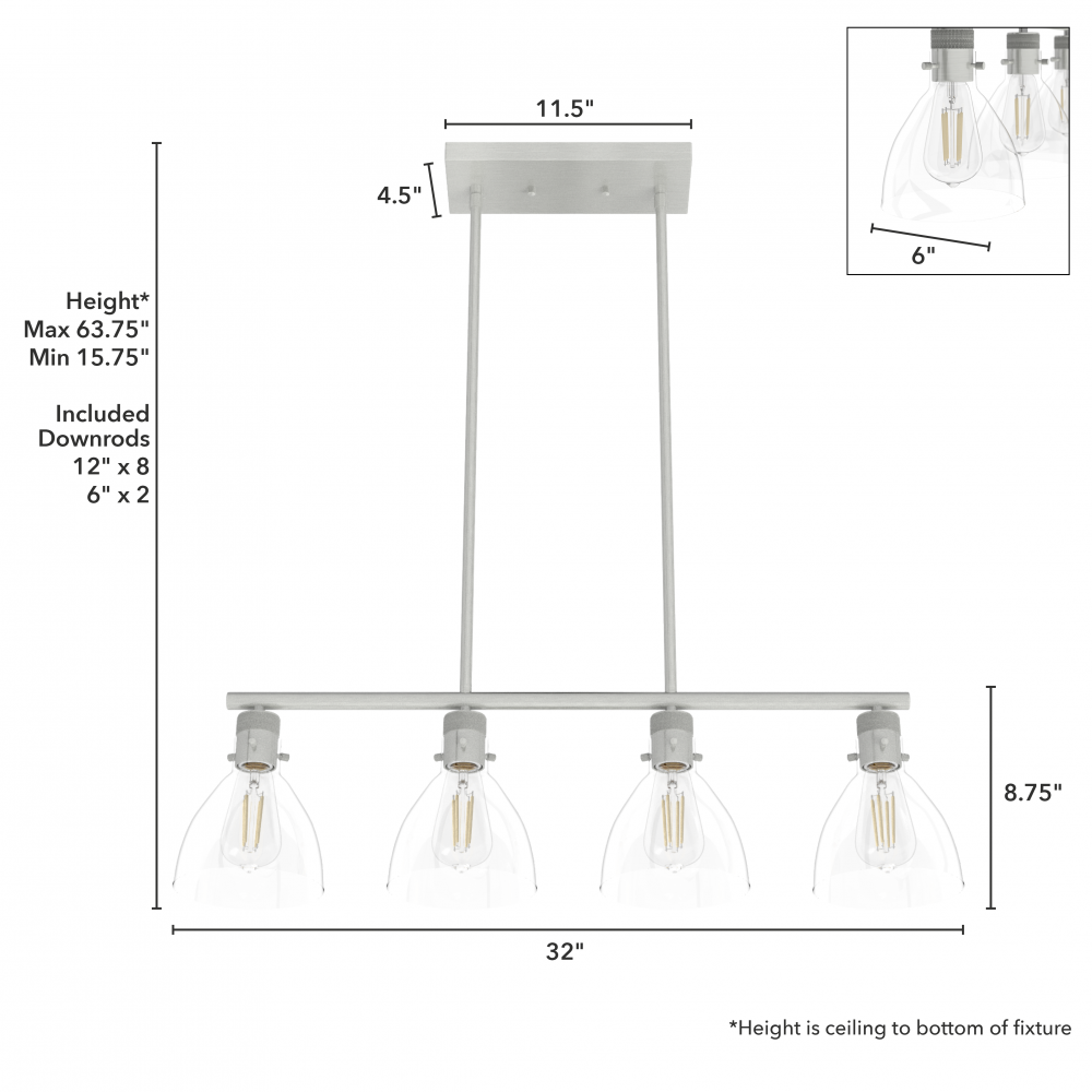 Requires 4 E26 bulbs. Bulbs not included.