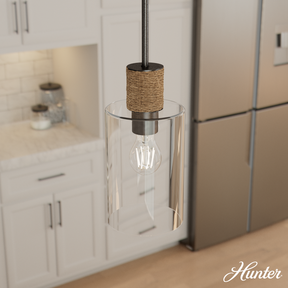 The Vanning Mini Pendant achieves the perfect blend of vintage charm and trendy coastal style. Its clear glass diffusor and rope detailing elevate your space and showcase your unique style. Designed in collaboration with Jasmine Roth, the Vanning Collection features a one-of-a-kind, hand-crafted touch that you can replicate in your own home. Mix and match with other fixtures from the Jasmine Roth Collection or our ceiling fan designs to complete your look.