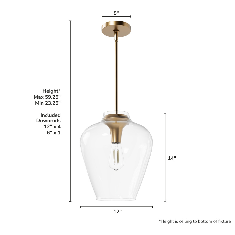 Hunter 49012 - Hunter Vidria Alturas Gold with Clear Glass 1 Light Pendant Ceiling Light Fixture