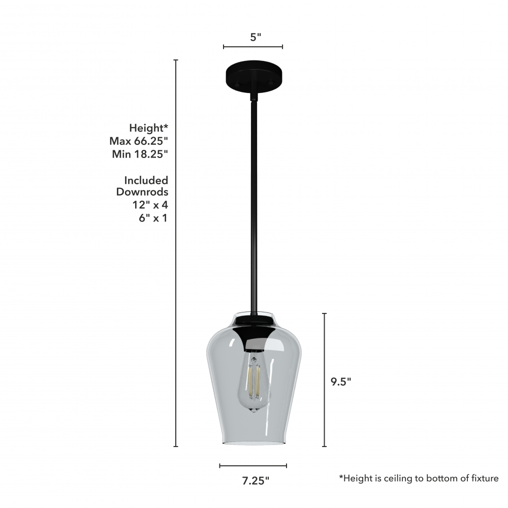 CUSTOMIZABLE HANGING OPTIONS: With the minimum required downrod, the hanging length is 18.25 inches. When using all of the included downrod, the maximum hanging length is 66.25 inches.