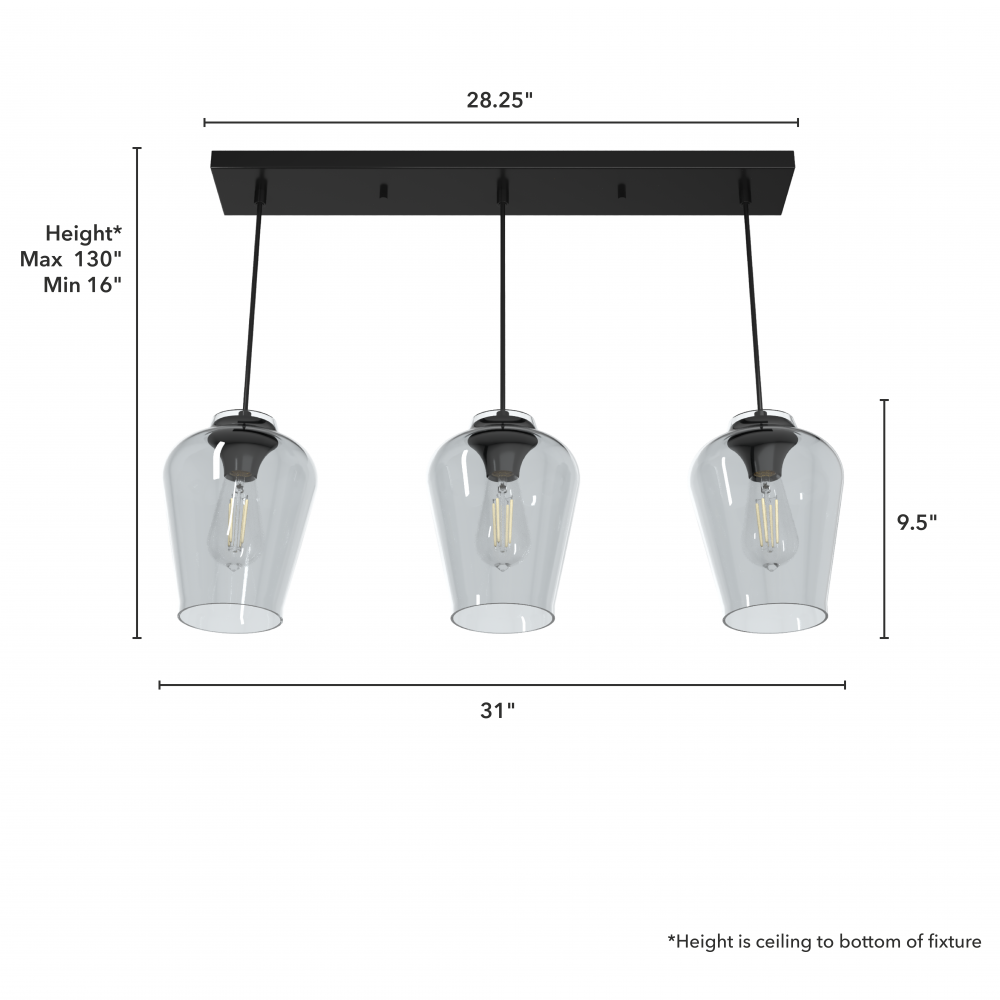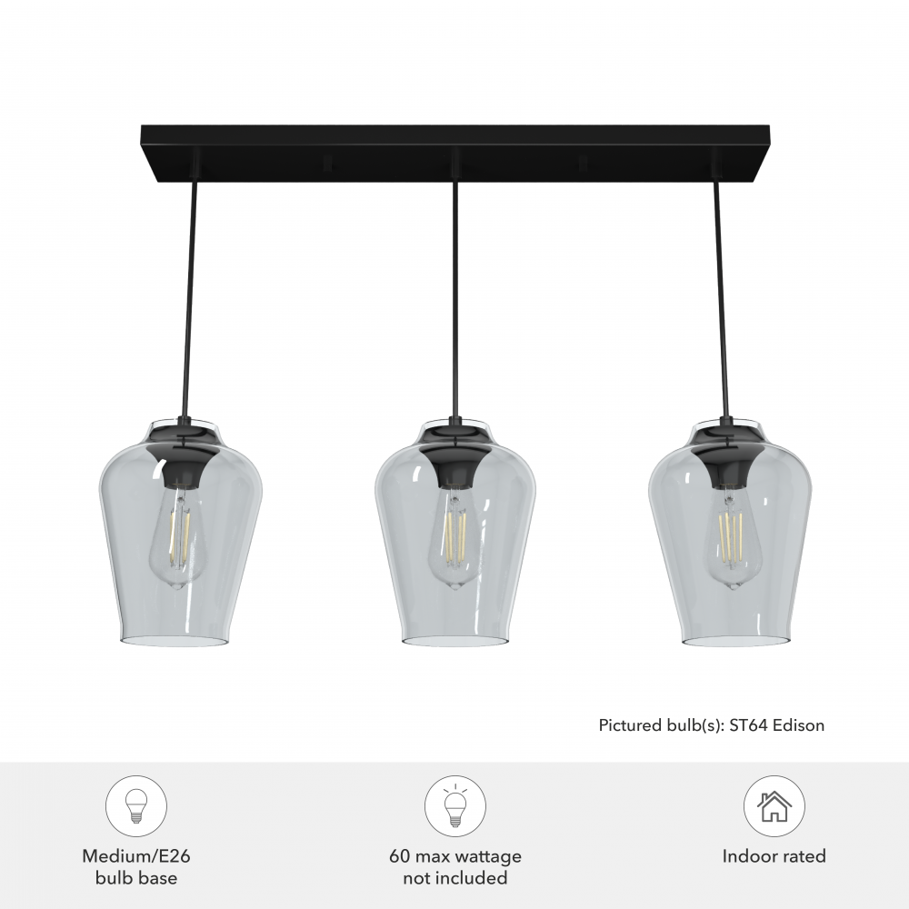 Requires 3 E26 bulbs. Bulbs not included.