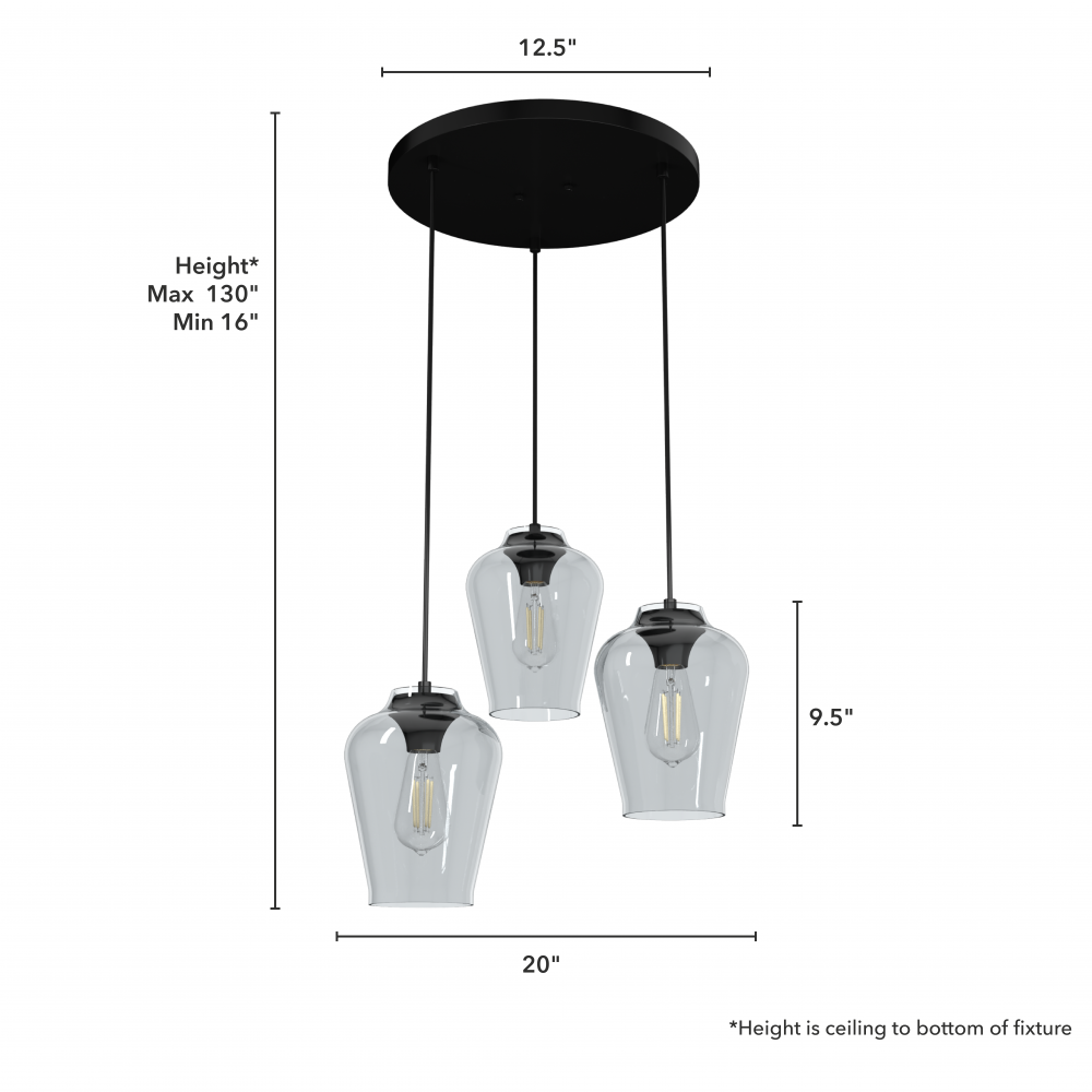 Requires 3 E26 bulbs. Bulbs not included.
