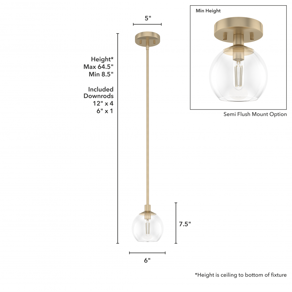 CUSTOMIZABLE HANGING OPTIONS: With the minimum required downrod, the hanging length is 8.5 inches. When using all of the included downrod, the maximum hanging length is 64.5 inches.