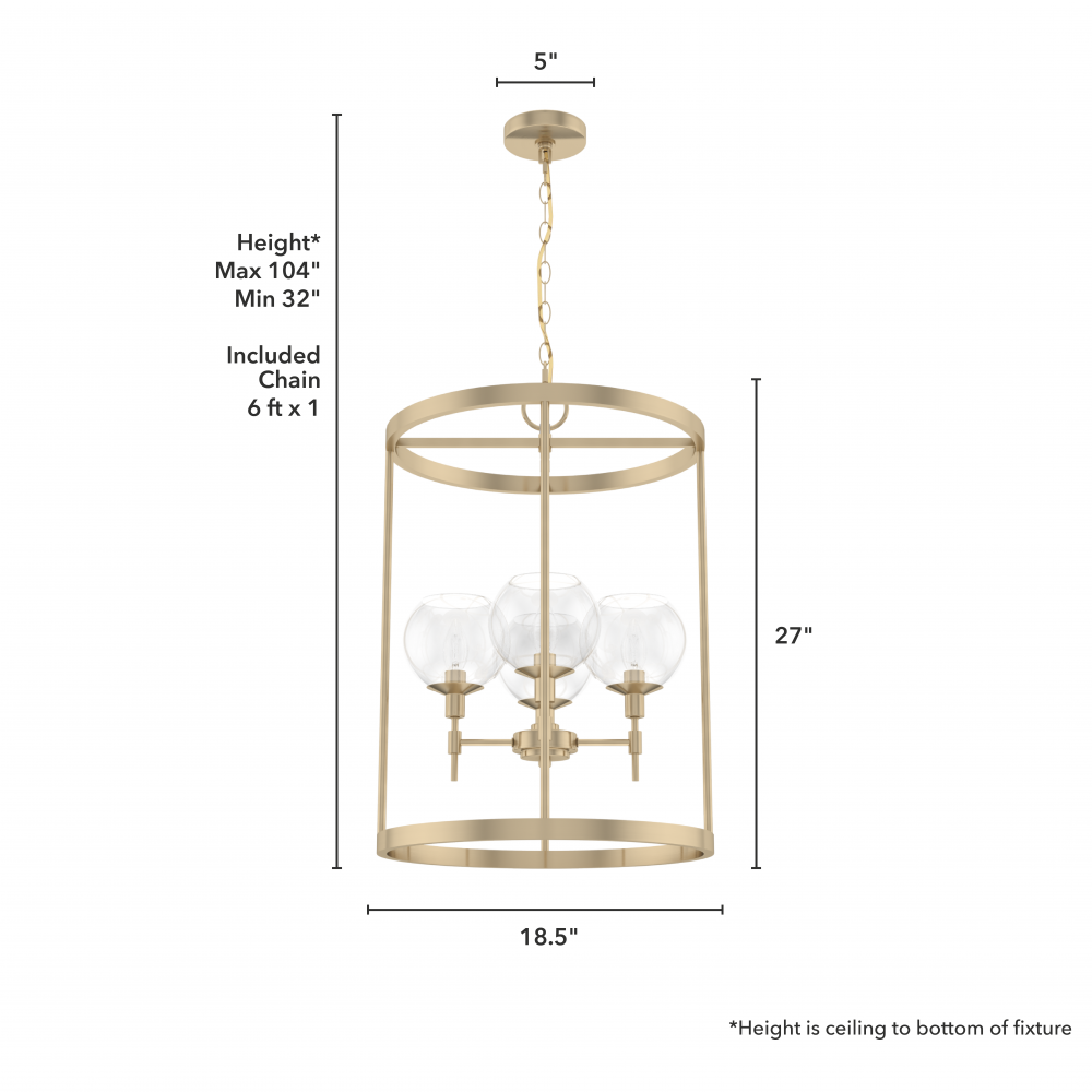 CUSTOMIZABLE HANGING OPTIONS: With the minimum required chain, the hanging length is 32 inches. When using all of the included chain, the maximum hanging length is 104 inches.