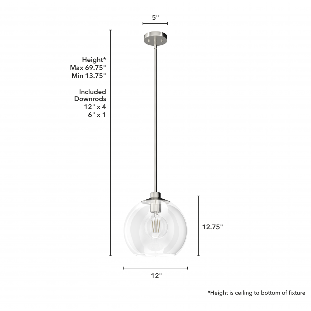 CUSTOMIZABLE HANGING OPTIONS: With the minimum required downrod, the hanging length is 13.75 inches. When using all of the included downrod, the maximum hanging length is 69.75 inches.