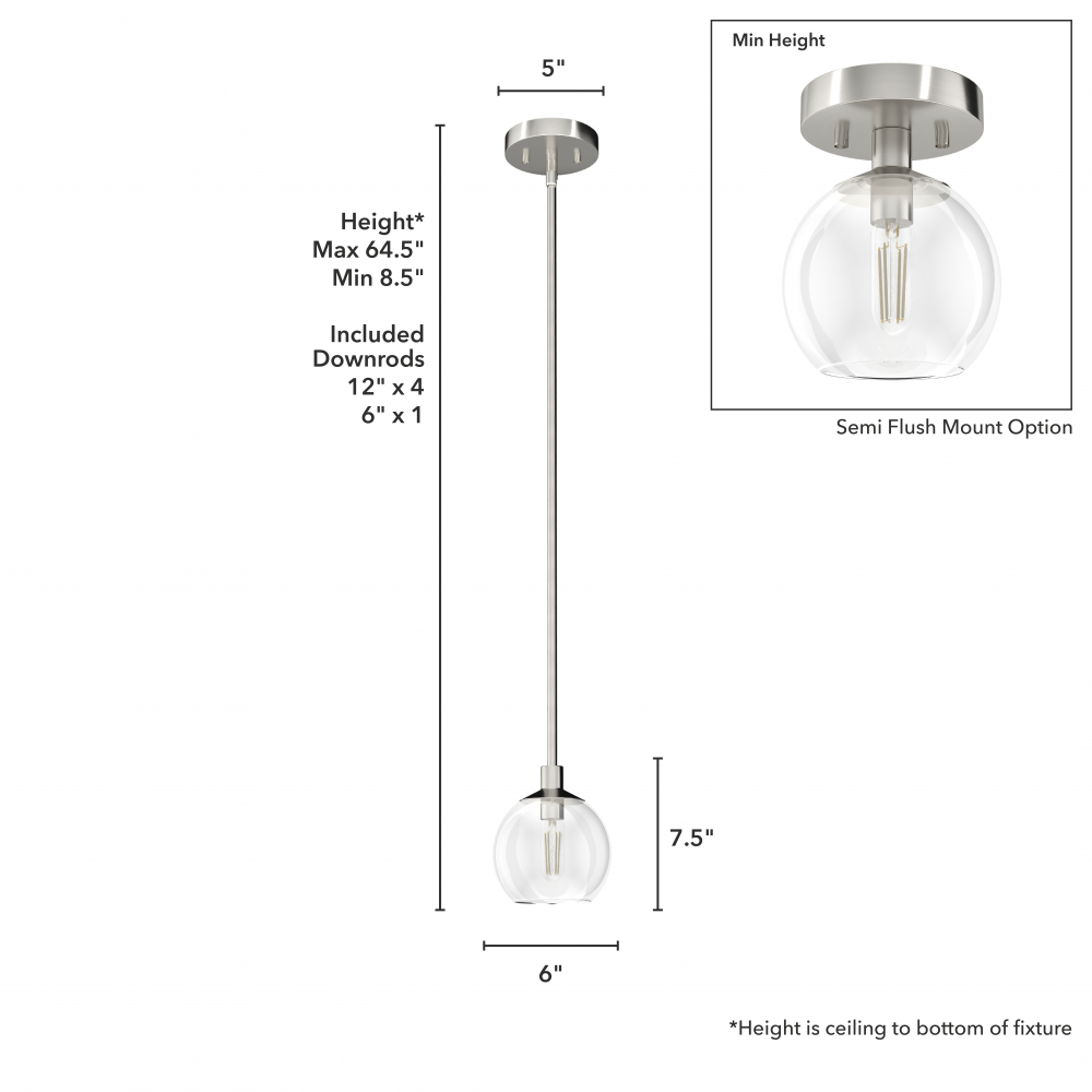CUSTOMIZABLE HANGING OPTIONS: With the minimum required downrod, the hanging length is 8.5 inches. When using all of the included downrod, the maximum hanging length is 64.5 inches.
