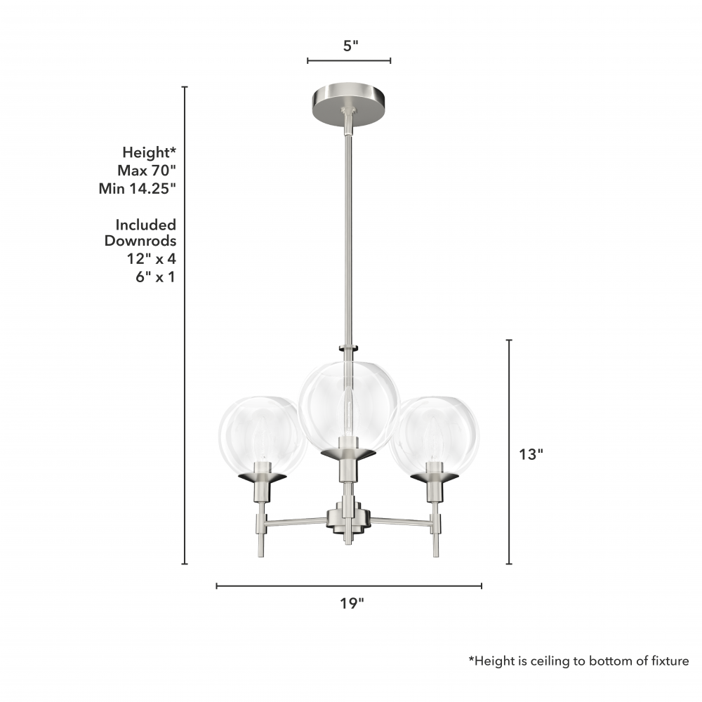 CUSTOMIZABLE HANGING OPTIONS: With the minimum required downrod, the hanging length is 14.25 inches. When using all of the included downrod, the maximum hanging length is 70 inches.
