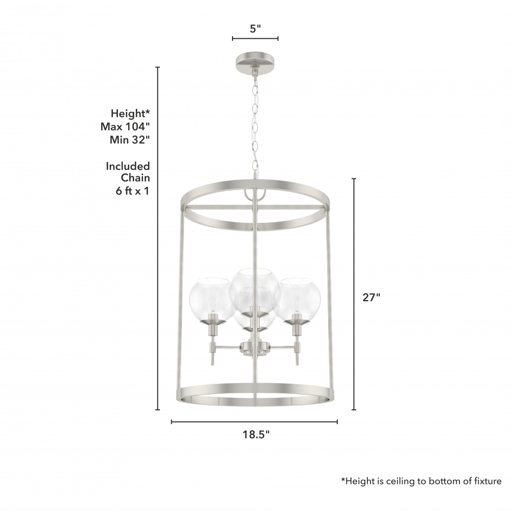 CUSTOMIZABLE HANGING OPTIONS: With the minimum required chain, the hanging length is 32 inches. When using all of the included chain, the maximum hanging length is 104 inches.