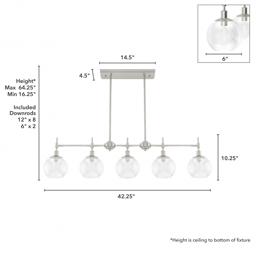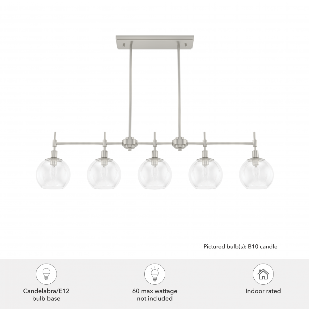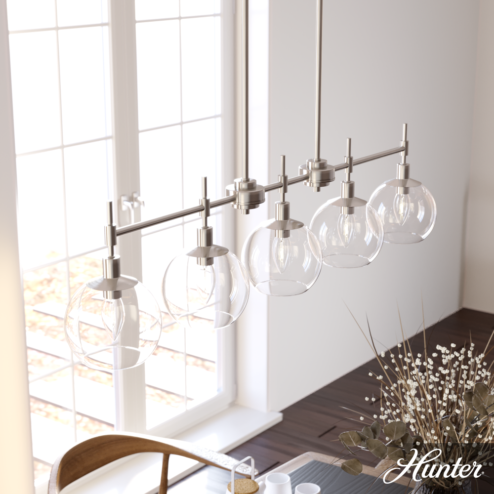 The graceful symmetry of the Xidane linear chandelier balances elegance with an edgy undertone. Glass orbs hang from metal, shining ambient light down as you entertain guests at your kitchen island or dining table. Make an impression by adding lights from the Xidane collection throughout your home to elevate all your spaces with the glow of glamour. Mix and match with fans from our ceiling fan collections to fully finish your space.