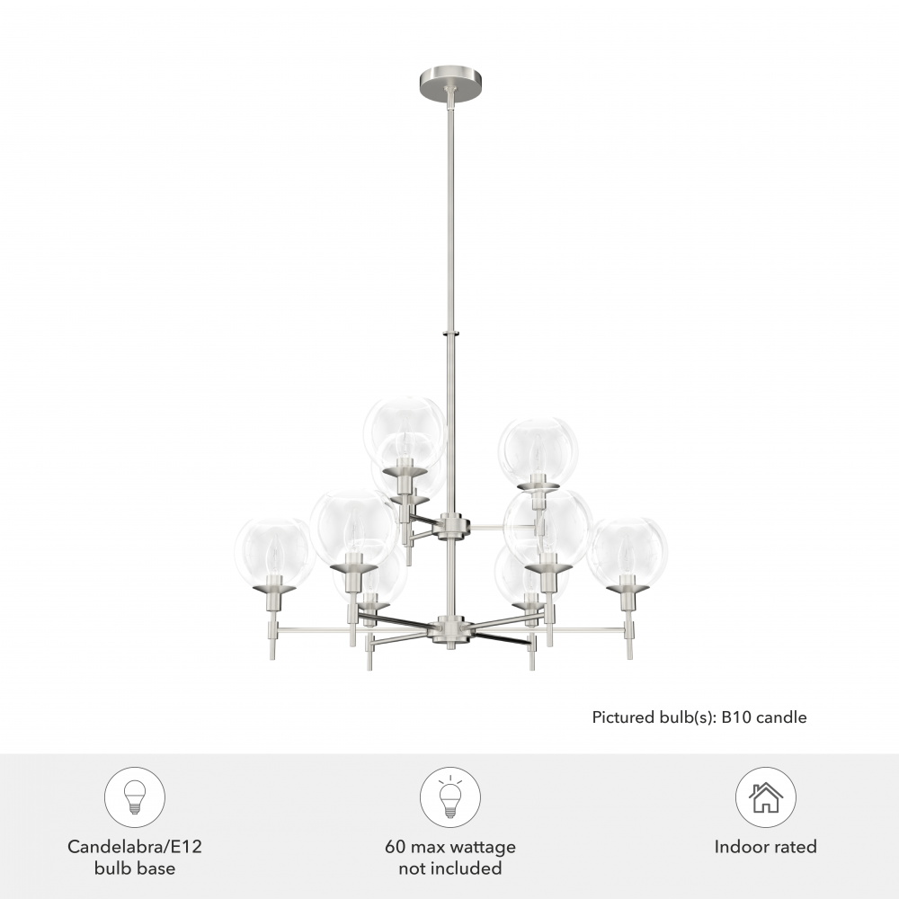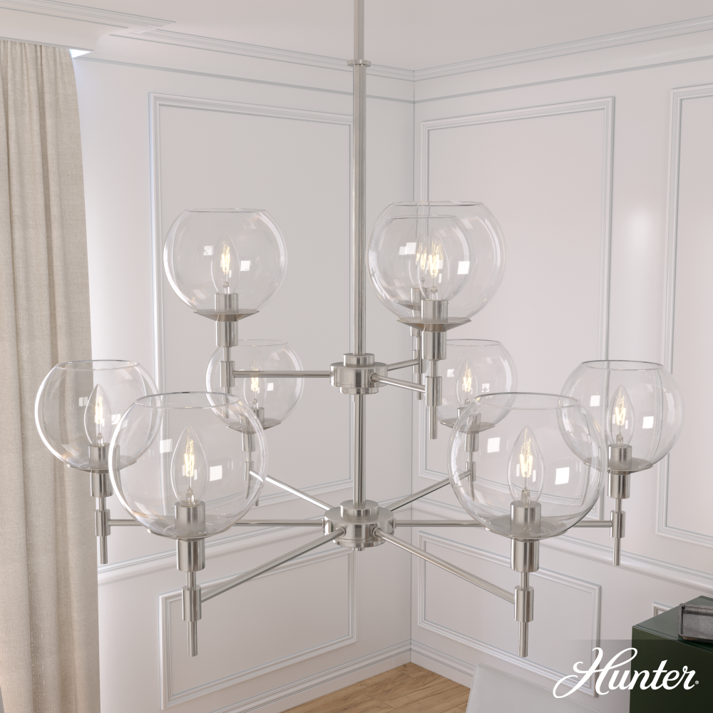 Cause a sensation with the Xidane multi-light chandelier. This fixture's show-stopping design will dazzle all who enter. Glass orbs with glowing lights sit atop a geometrically formed frame of metal creating an enchanting atmosphere. Make an impression by adding lights from the Xidane collection throughout your home to bring glamour to every space. Mix and match with fans from our ceiling fan collections to fully finish your space.