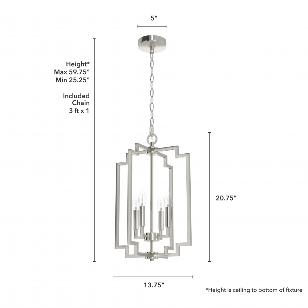 Hunter Zoanne Brushed Nickel 4 Light Medium Pendant Ceiling Light Fixture
