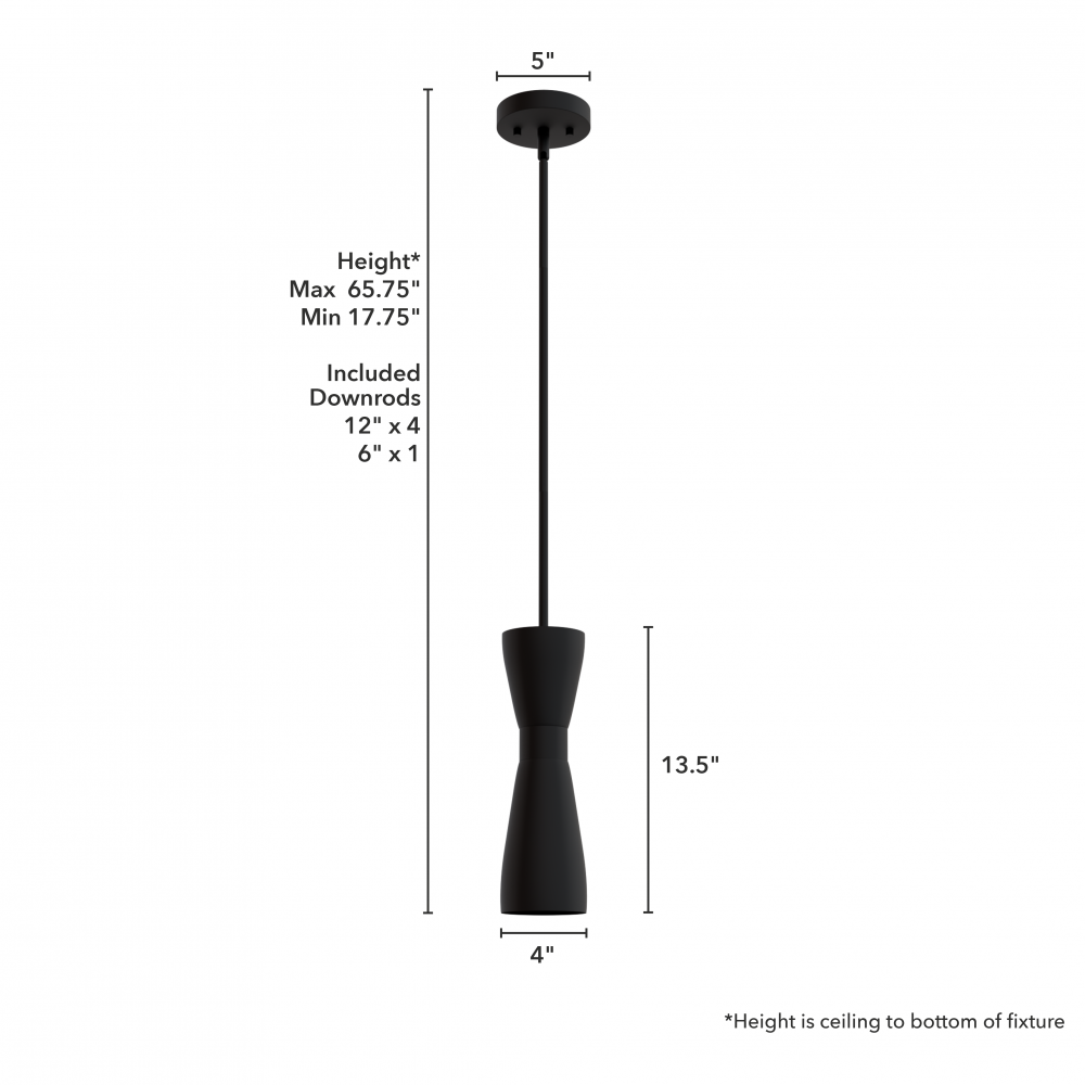 CUSTOMIZABLE HANGING OPTIONS: With the minimum required cord, the hanging length is 17.75 inches. When using all of the included extensions, the maximum hanging length is 65.75 inches.