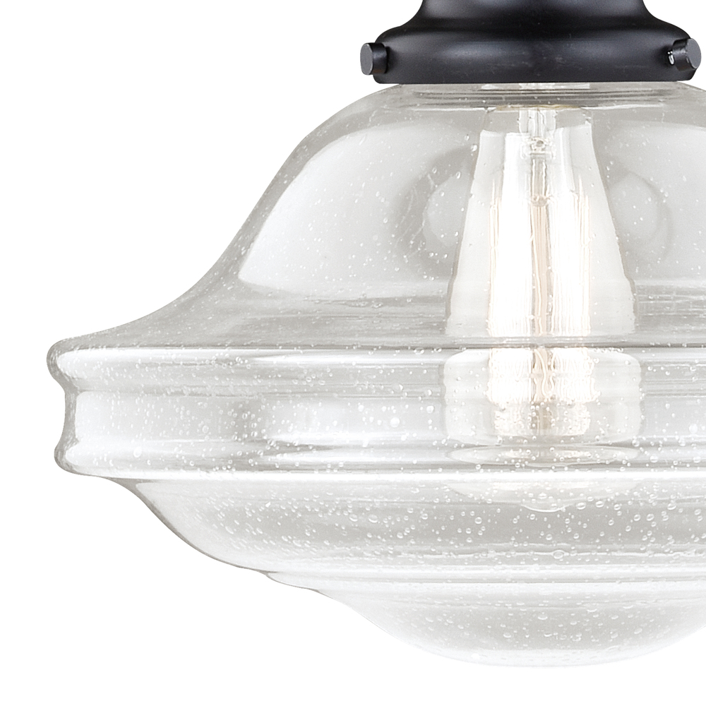 The Huntley is a timeless collection inspired by mid-century small-town aesthetics. The vintage school house glass is the focal point of this design with its unique profile and glass options. Offered in multiple finishes and glass options, this versatile farmhouse light will provide a unique accent to a variety of kitchen, dining, and bathroom settings. Medium screw base lamping provides maximum light output. The complete collection includes chandeliers, pendants, semi-flush ceiling lights, and 1, 2 3, and 4 light bathroom vanities.