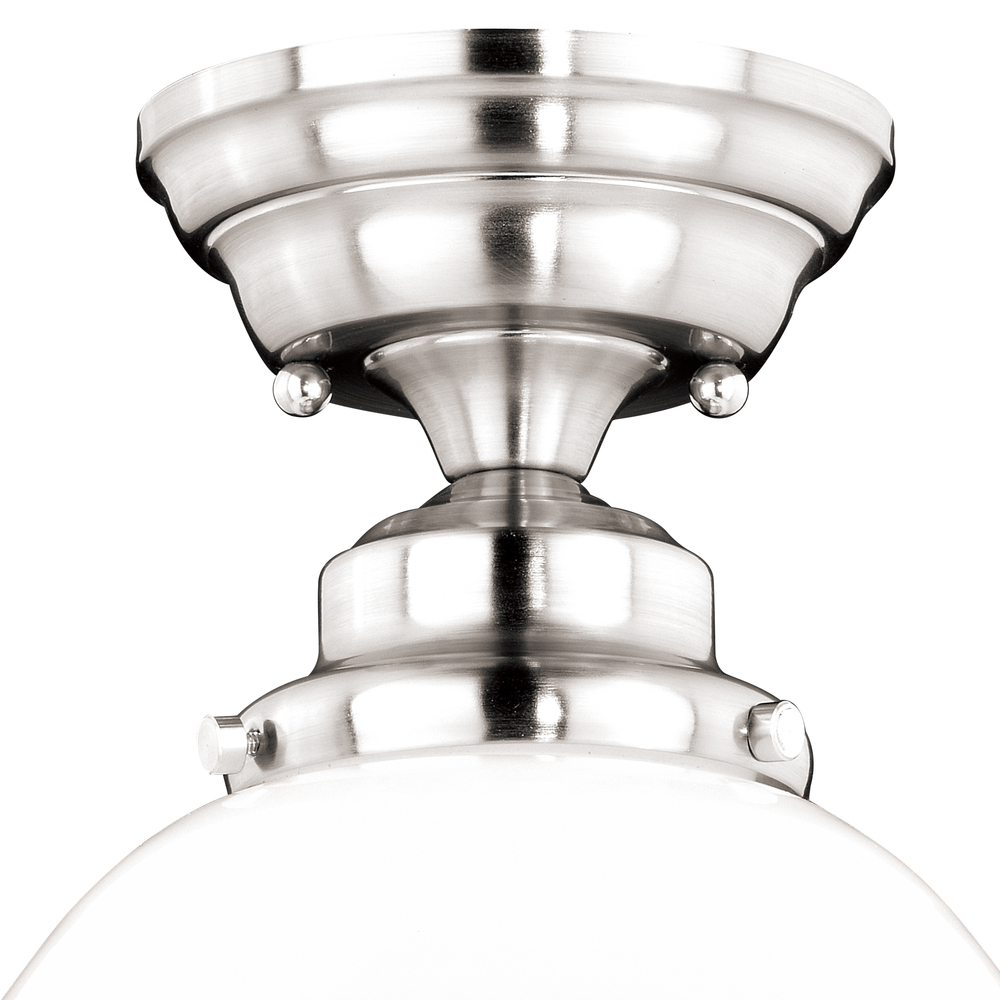The Huntley is a timeless collection inspired by mid-century small-town aesthetics. The vintage school house glass is the focal point of this design with its unique profile and glass options. Offered in multiple finishes and glass options, this versatile farmhouse light will provide a unique accent to a variety of kitchen, dining, and bathroom settings. Medium screw base lamping provides maximum light output. The complete collection includes chandeliers, pendants, semi-flush ceiling lights, and 1, 2 3, and 4 light bathroom vanities.