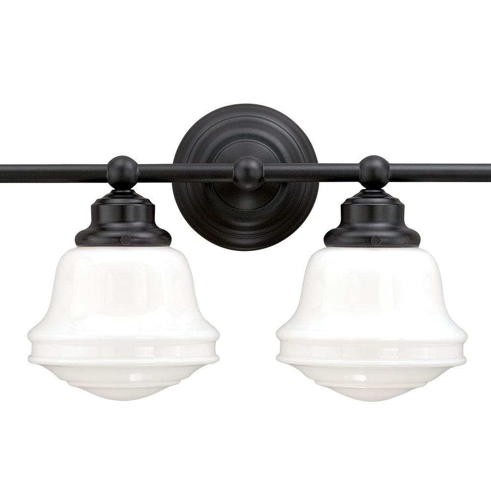 The Huntley is a timeless collection inspired by mid-century small-town aesthetics. The vintage school house glass is the focal point of this design : with its unique profile and glass options. Offered in two finishes, this versatile wall light will provide a unique accent to a variety of kitchen, dining, and bathroom settings. Medium screw base lamping provides maximum light output. Mountable in up light or down light configuration. The complete collection includes Medium Size Pendants, Semi-Flush, and 1, 2 3, and 4 Light vanities.