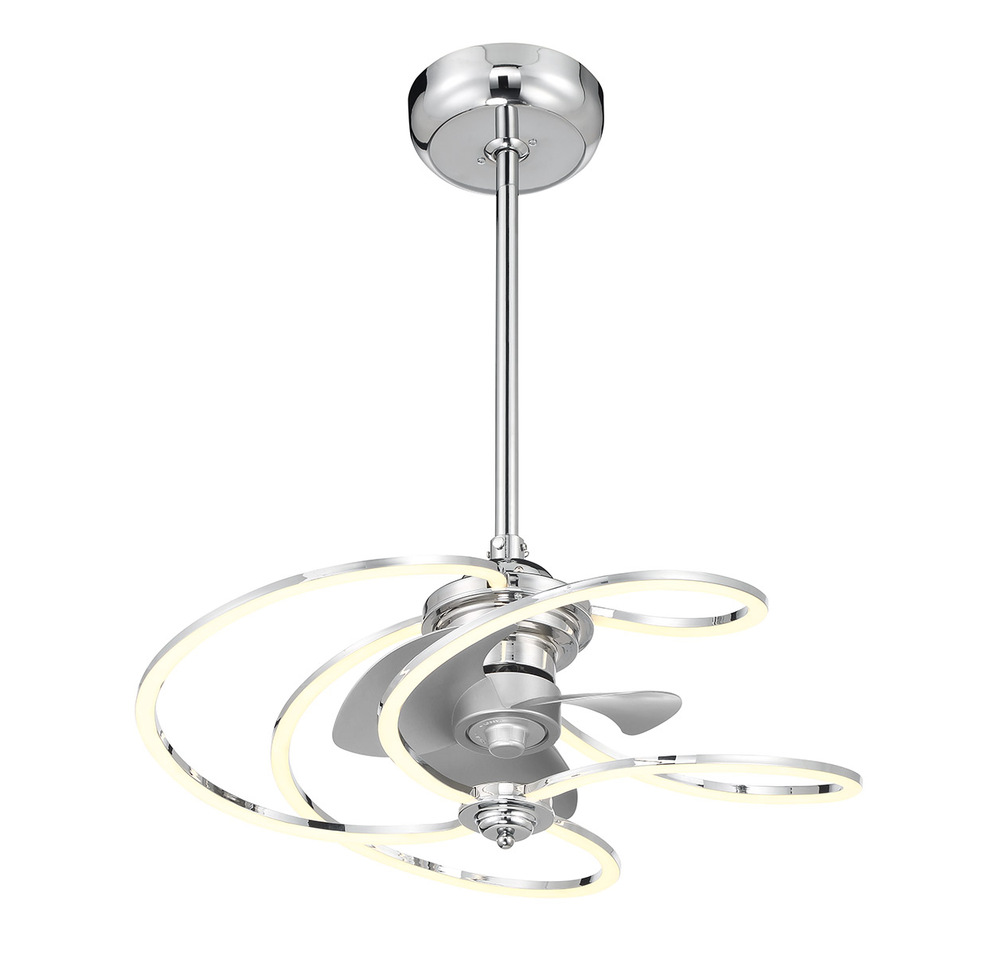 Add a hint of magic to your home with the Savoy House Hydra Fan D'Lier, which blends the chandelier and the ceiling fan into one fabulously fashionable fixture. Its swirling bands of integrated LED light encircle the fan, which is finished in Polished Chrome. Hydra uses an efficient DC motor and has a handheld remote control for extra convenience. It is 24" in width and 11.5" in height. Comes with a 4" downrod and an 18" downrod. Fan D'Liers are a Savoy House exclusive. These custom designs are inspired by high-end designer styles and take top trends to a whole new level.