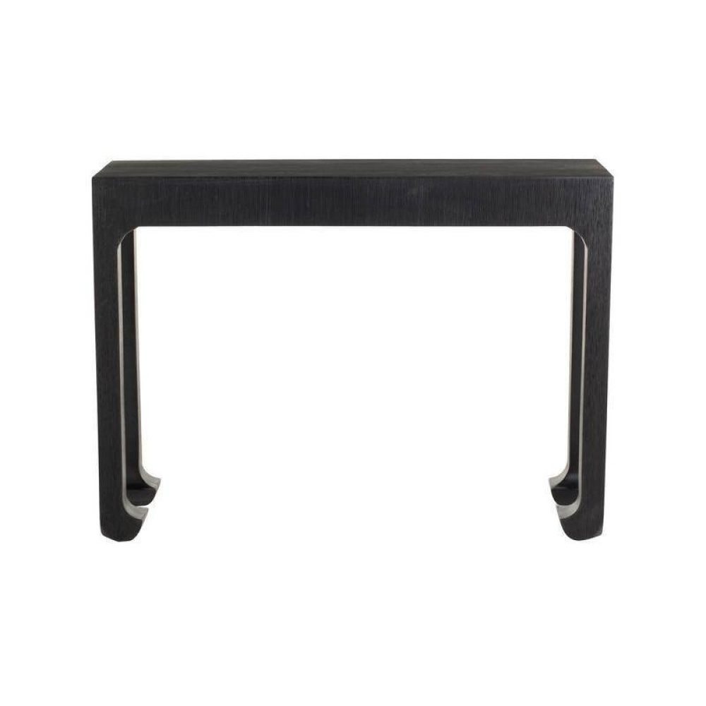 Slim in profile and crafted of ebony mango wood, the traditional parsons-style console is updated with hand-carved claw feet. Finish will vary.