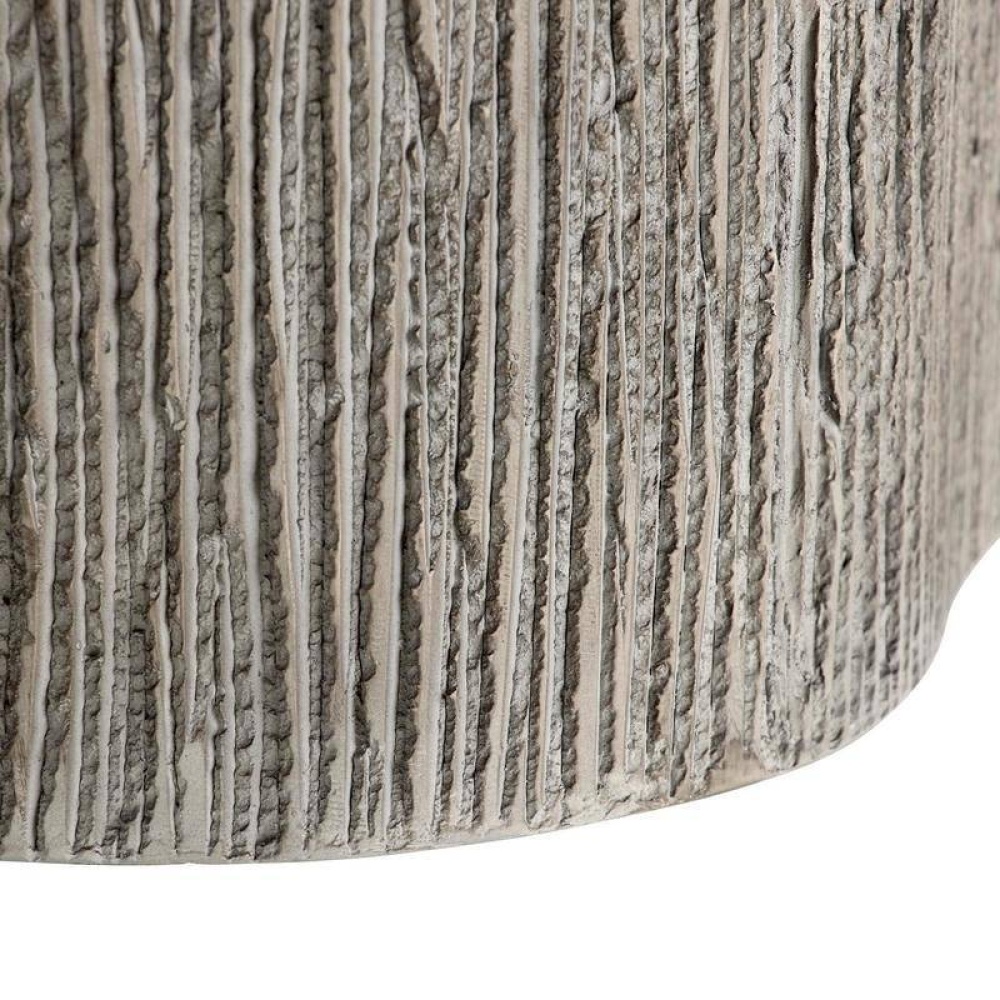 The free- form organic curves of the Indio have a striated texture to contrast the smooth top surface. Cast of gray stonewash composite. Stylish on its own, it can also be perfectly paired with its matching larger companion in matte black. Finish will vary.