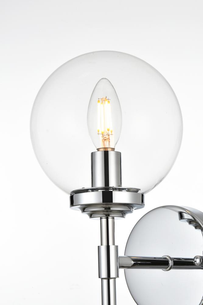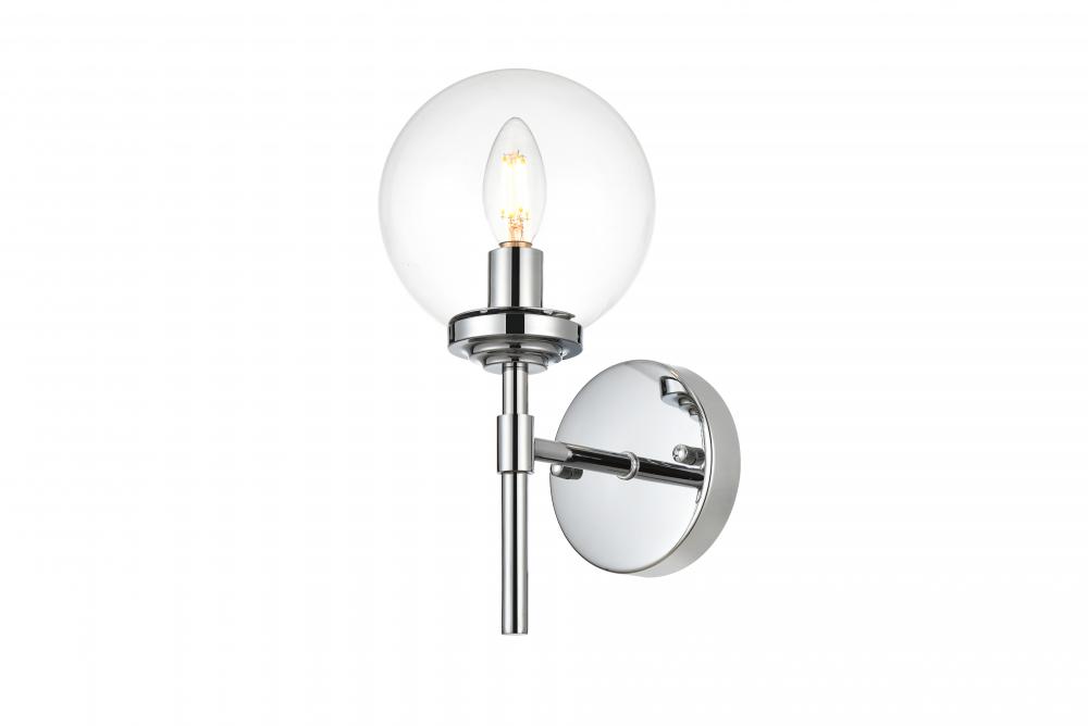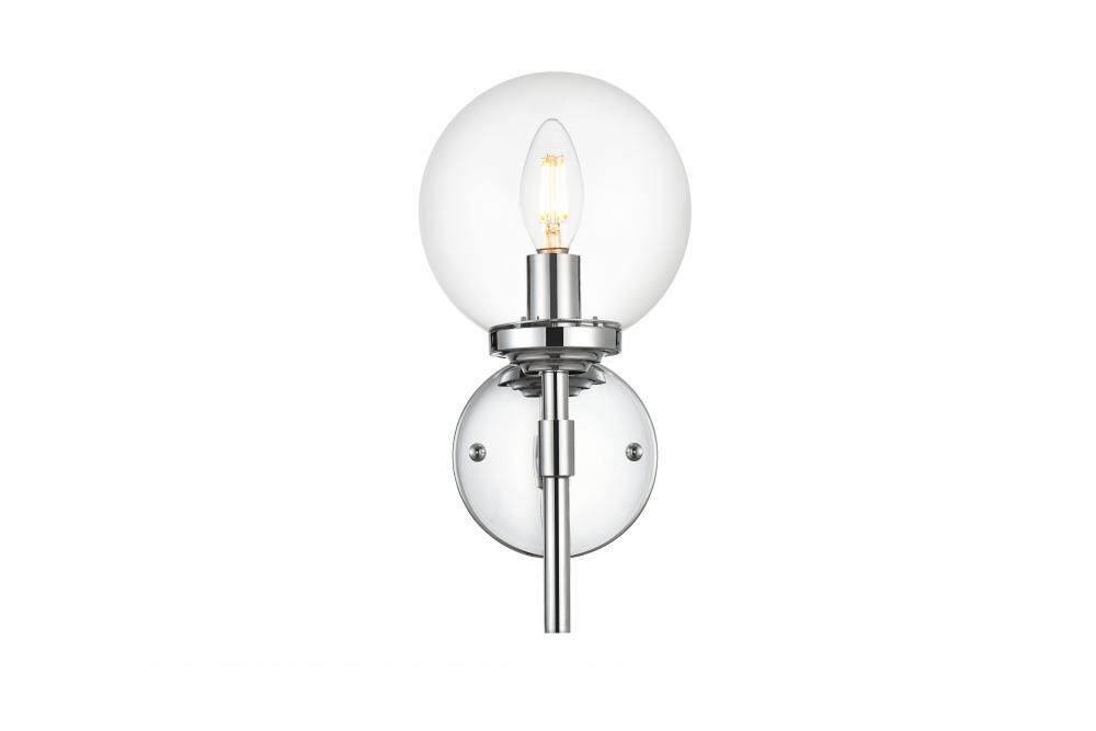 This armed sconce features a streamlined and minimalistic design that complements any space in your home. Shown with the clear glass shades, this wall sconce is versatile and can be placed in a bathroom,entry way, or hallway. Compatible with dimmers, so you'll have the right amount of light in any given time of the day. The hardwired fixture is safe to use in damp locations. Made from iron with a modern finish, it includes a round backplate and a matching arm that holds in place one 40W bulb ( sold separately). Available in multiple finishes. Can be installed as an uplight or a downlight.