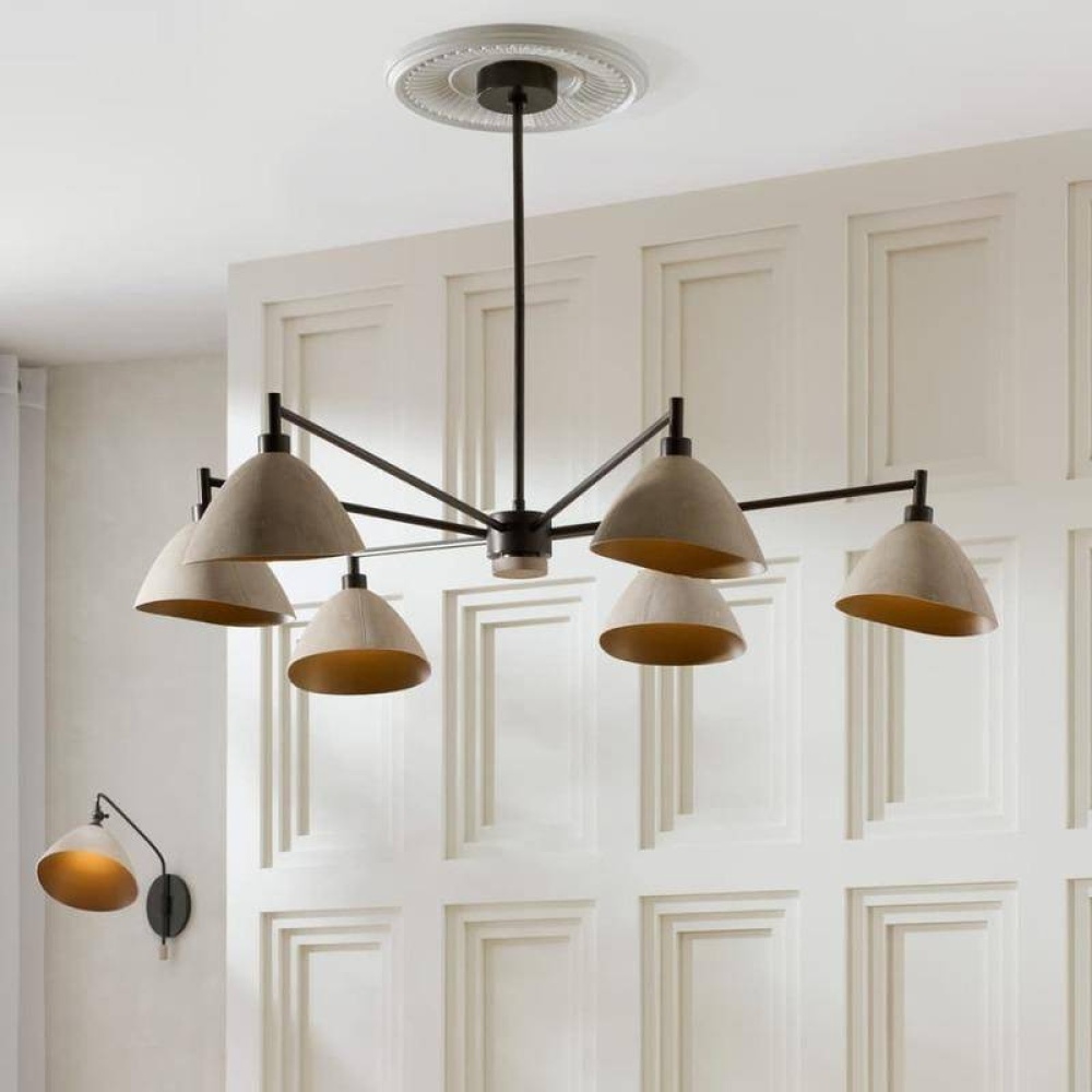 Faux shagreen leather is carefully shaped and stitched to form the shades of the Inlet. Embossed with a shagreen stingray texture, the ivory domes suspend from a linear arm of English bronze steel. A leather cap centers the base of this dynamic style. A dramatic accessory, this style can also be complemented by the matching Inlet Sconce. Finish will vary. Damp-rated, although limited, covered outdoor conditions may affect finish.