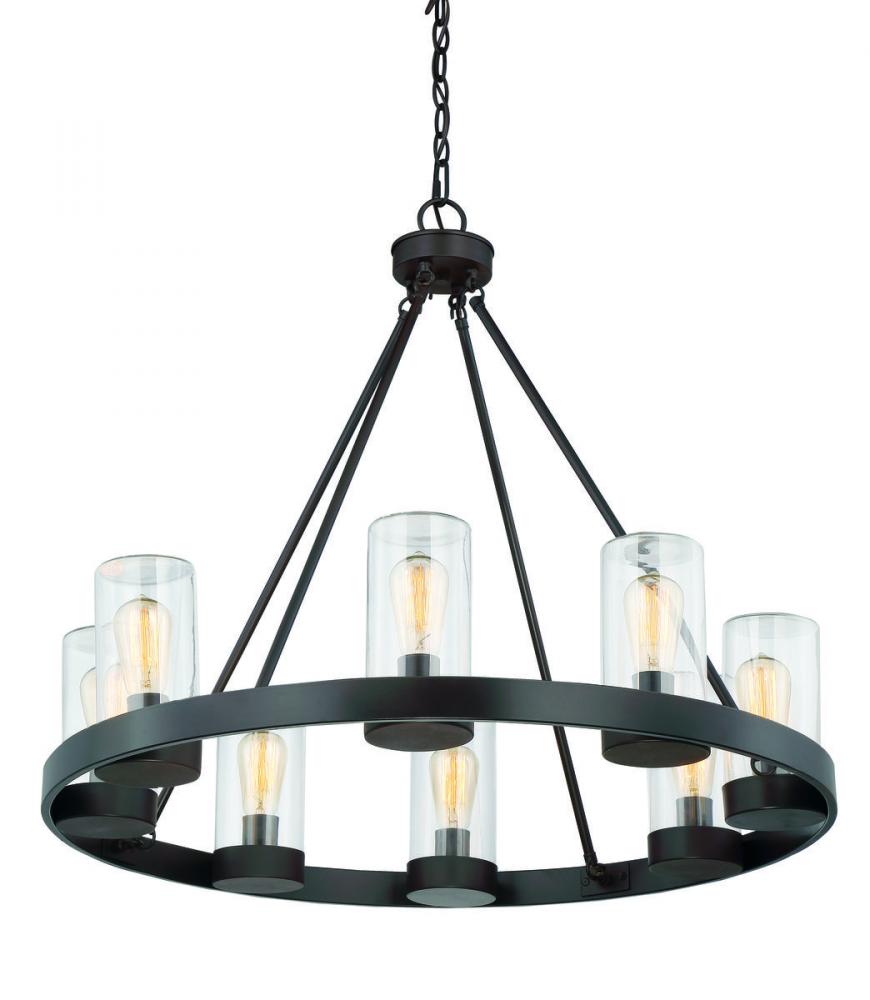 Outdoor living spaces deserve stylish lighting like this Savoy House Inman 8-light chandelier. The lights are on full display, but protected by clear cylindrical glass shades, and offset with an English bronze finish. Damp area rated, so this light can be used in covered outdoor areas. Outdoor chandeliers turn spaces like porches and patios into exterior living spaces! Since the bulbs are exposed, try using stylized bulbs (not included) like tubular shape or Edison style for a different look. The English bronze finish can be matched with bronze hardware or mixed with hardware in other finishes. Inman has a versatile look that makes it an excellent choice for a variety of decor styles. When you choose a Savoy House lighting fixture, you can be certain you’ve selected a piece that will withstand the test of time.