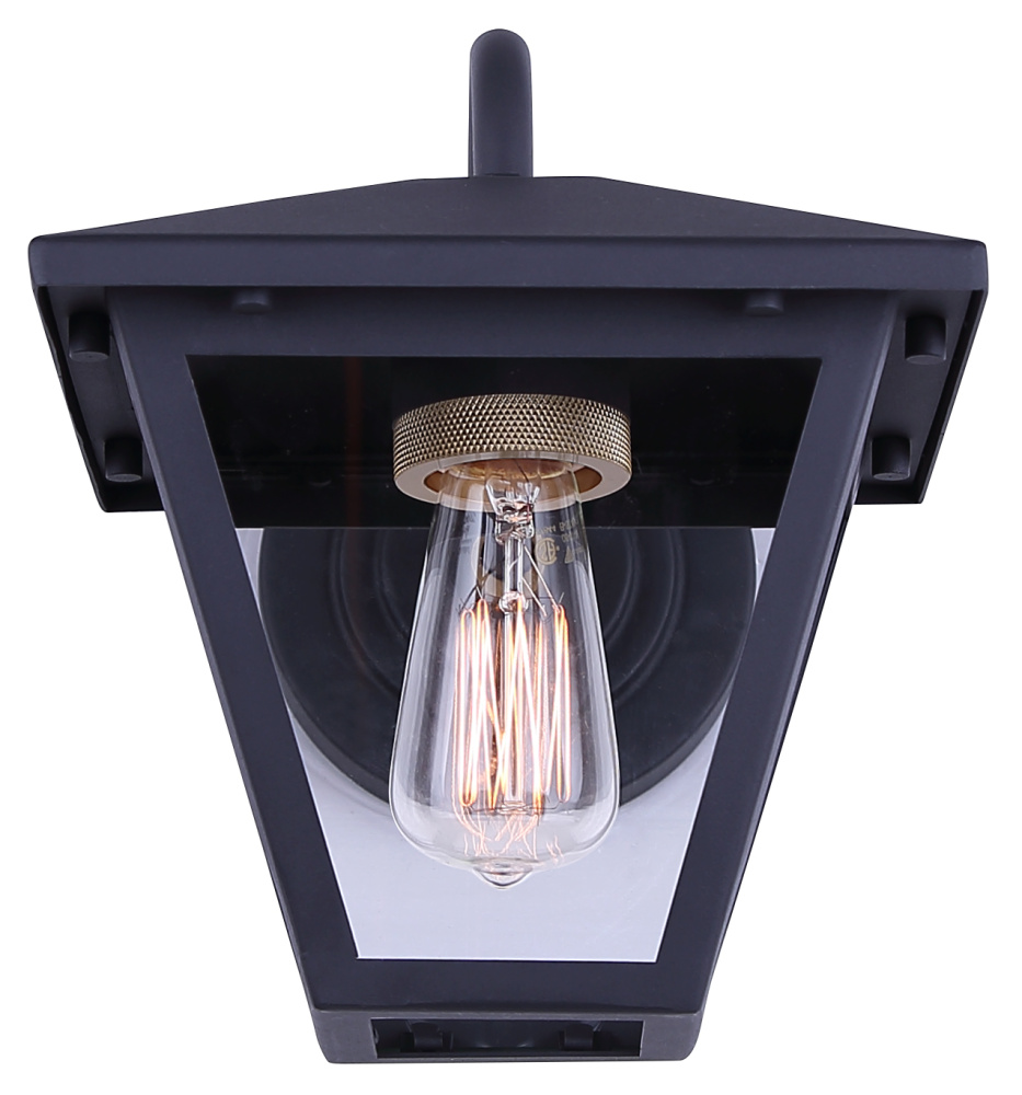 IRA 1-Light Wall Lantern Black and Gold Finish with Clear Glass Shade