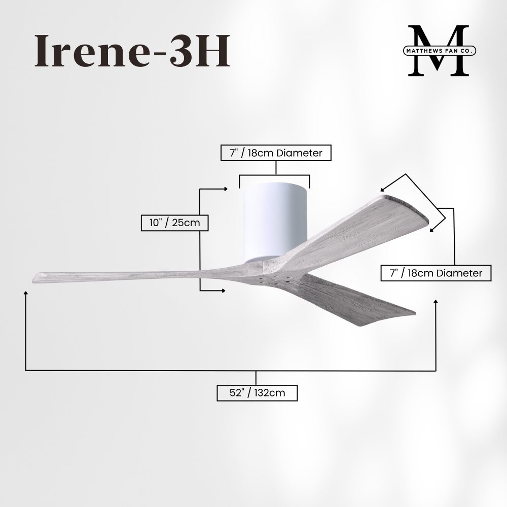 Irene-3H - Three Blade Flush Mount Paddle Fan - 52" - Gloss White Finish - Barn Wood Tone Blades
