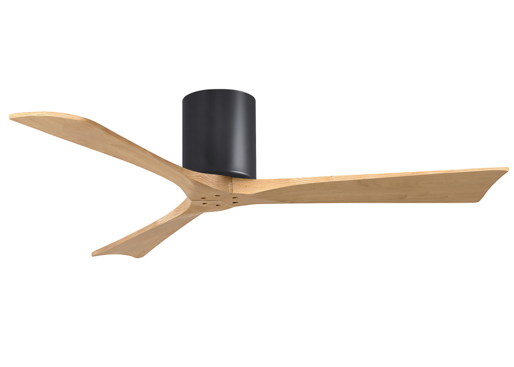 Matthews Fan Company IR3H-BK-LM-52 - Irene-3H - Three Blade Flush Mount Paddle Fan - 52" - Matte Black Finish - Light Maple Tone Blad
