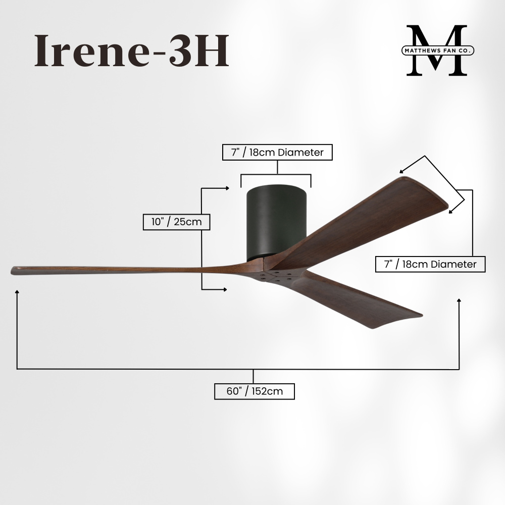 Irene-3H - Three Blade Flush Mount Paddle Fan - 60" - Matte Black Finish - Walnut Tone Blades