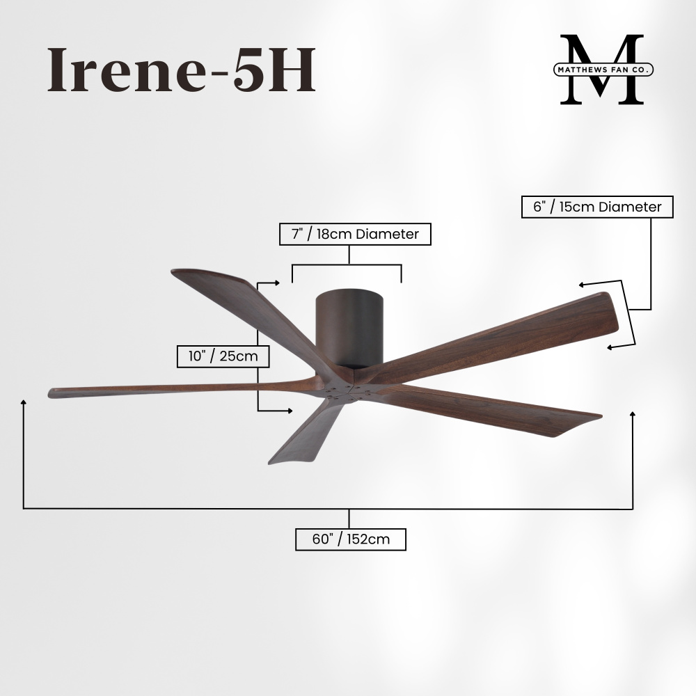 Matthews Fan Company IR5H-TB-WA-60 - Irene-5H - 60" Five Blade Flush Mount Paddle Fan - Textured Bronze Finish - Walnut Tone Blades