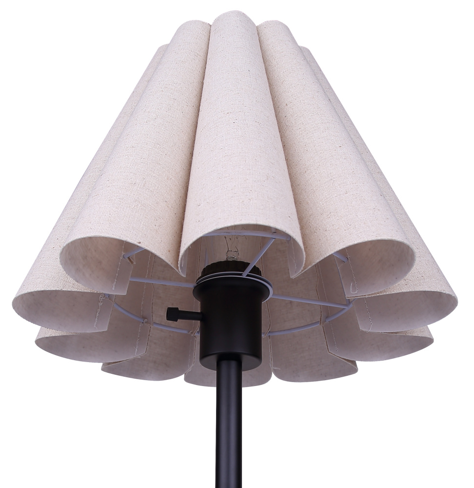 Iris Contemporary Table Lamp Black Finish with Natural Fabric Shade and Socket Switch