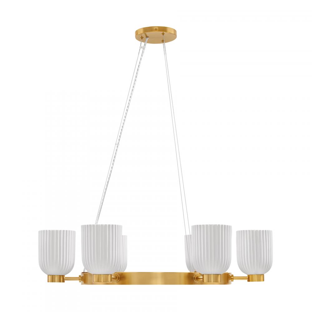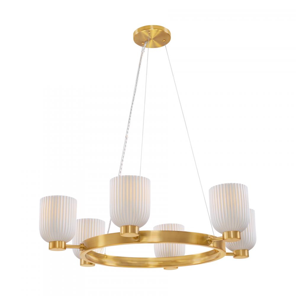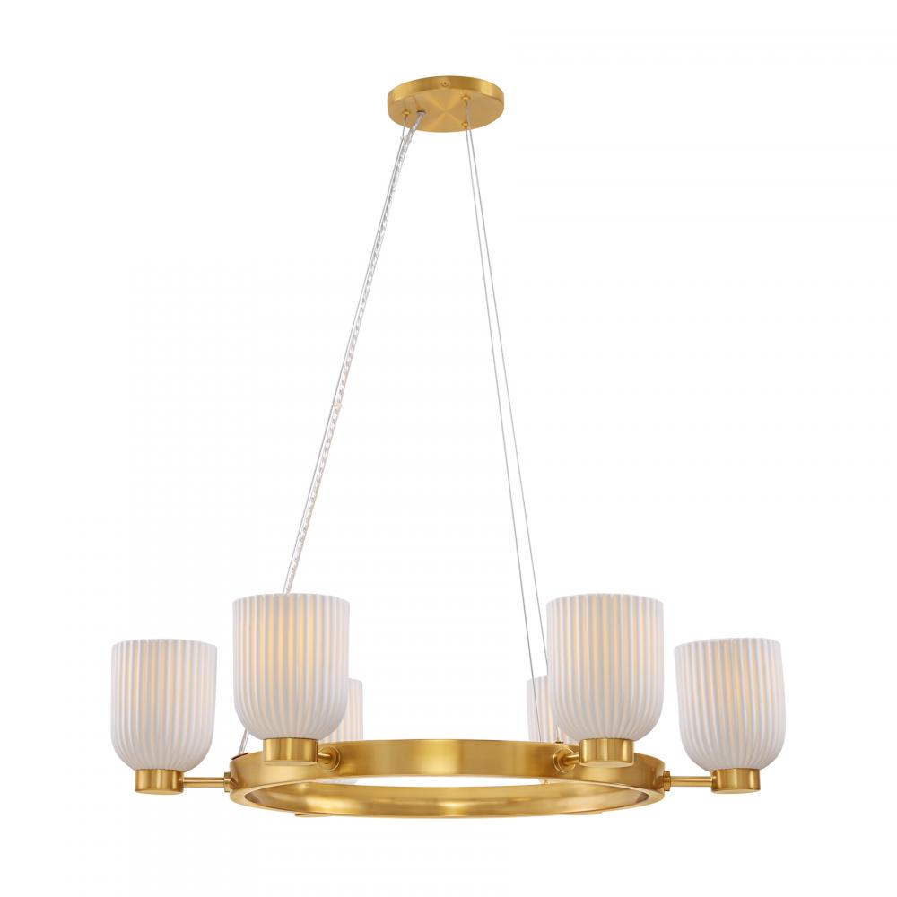 The Savoy House Isla Blanca 6-light chandelier was designed by Breegan Jane, an award-winning interior designer and TV host. Breegan believes that luxe design is in the details, like the beautifully textured translucent porcelain shades that take the spotlight here. When the lights are on, the shades create a flattering glow. When the lights are off, they add an eye-catching touch to any room. The Warm Brass finish amplifies the glamour. Isla Blanca is 22" in height and 32" in width. Uses six standard size bulbs of up to 60 watts per bulb. Bulbs not included.