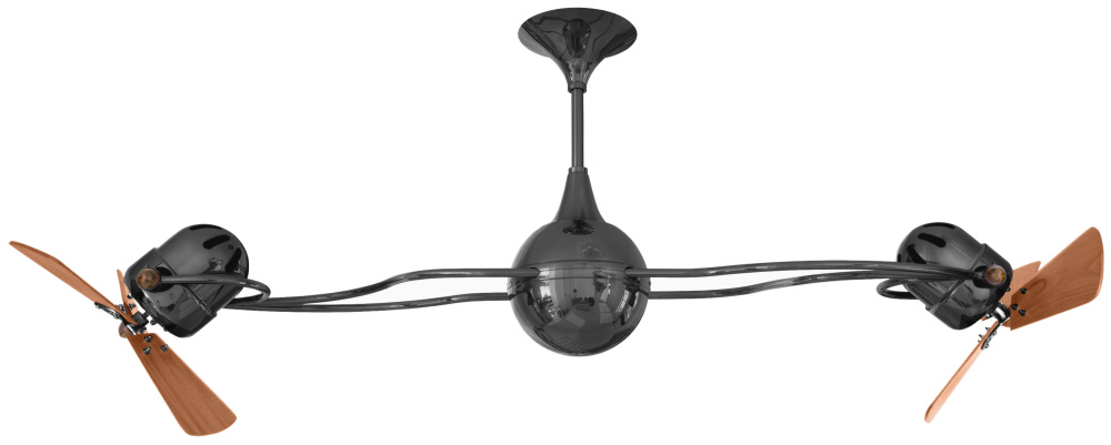 The Italo Ventania is the largest rotational fan in the Matthews Fan Co collection. Its vortex sculpted arms grasp also remarkable, side-mounted fan heads in gentle, equatorial rotation. The fan heads can be infinitely positioned in 180-degree arcs for optimum air movement; the greater the angle of the motor to the horizontal support rods (up or down), the faster the axial rotation. A slow, controlled axial rotation is achieved by both fan head position and fan blade speed.