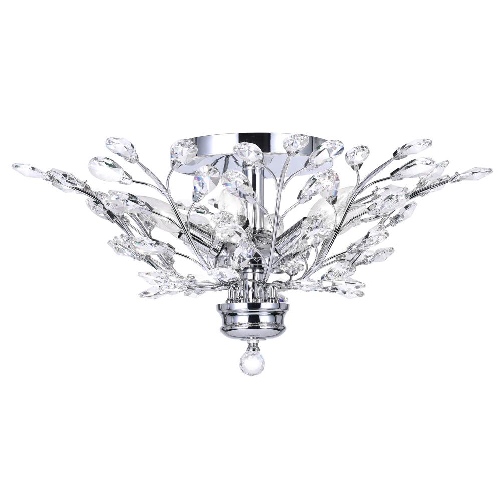 Elegant Nature-Inspired Design The Ivy 6-Light Flush Mount features delicate chrome-finished stems and faceted clear crystals, creating a vine-like aesthetic that adds a touch of organic elegance to any room.