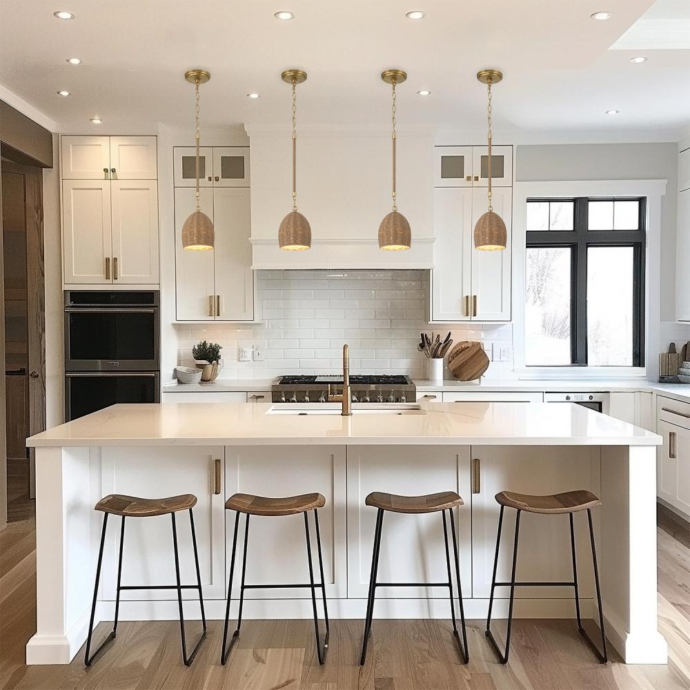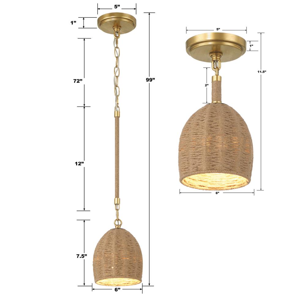 If cozy, paired-back, and relaxed style defines your home interior choices, the textural Jace pendant light is what you have been looking for. The natural warmth of organic Jute has a light and airy feeling that adds architectural interest to any space. The downward-facing rod is accented with wrapped Jute with a gold finish, creating a beautiful tone-on-tone look. This versatile collection seamlessly blends in modern, coastal, and even traditional styles. Bulb included.